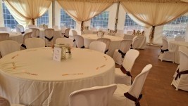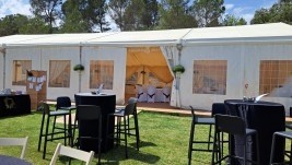 Us oferim aquesta instal·lació si el vostre grup supera les 50/60 persones en format còctel (a peu dret amb taules tipus aperitiu) o en format banquet (taules rodones i persones assegudes).